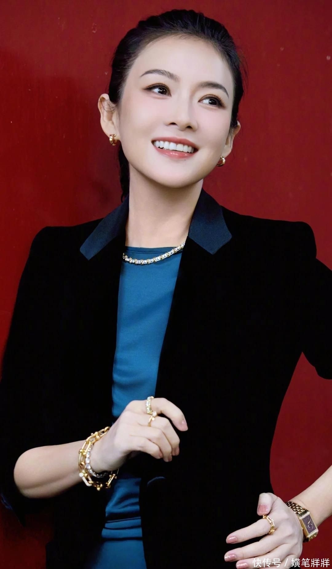 当日她身着哑光黑丝绒修身西装外衣,内搭乌绿真丝垂坠长裙,发髻高挽利落干练,轻而易举间既有东方女性的温润气韵,又贮蓄扼制淡薄的力量感,涓滴不见时光侵蚀的印迹,只余下千里淀后的耐心与锐气。