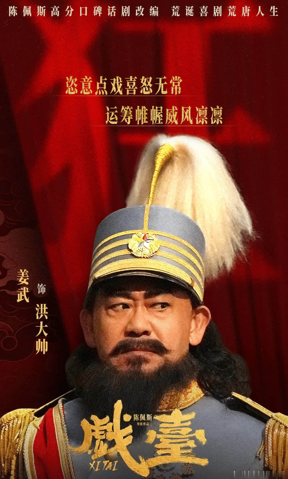 陈佩斯、黄渤、姜武的组合号称“笑剧天花板”。陈佩斯将侯喜亭的奸诈与颓落如鱼得水,为求真确真撞柱、真扇耳光;黄渤把大嗓儿的憨傻与执着演绎得长篇大论,从初度登台的神魂颠倒到最终挺身而出的决绝,完成常人物的成长弧光;姜武则赋予洪大帅孩童般的结净与暴君的厉害,唐山方言的“老乡儿”“忒儿好啊”成为全片最大笑点。就连副角也个个出彩:余少群的虞姬扮相惊艳却侥幸多舛,陈大愚将“恶奴”徐明礼的驴蒙虎皮演得活纯真现。
