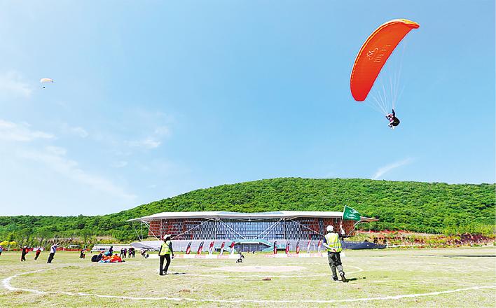 东宝圣境山滑翔伞基地,让搭客体验御风而行的容或。 (湖北日报全媒记者 张诗秋 摄)