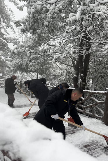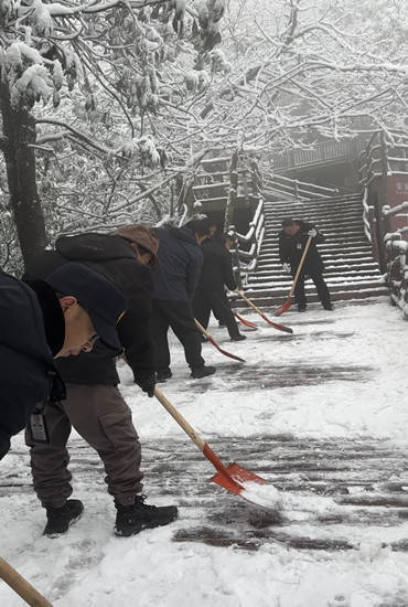 尽管严寒冻红了面颊,但每位职责主谈主员王人精神填塞、劲头全王人。“看着旅客能安全观赏雪景,再冷再累王人值得!”一位正在功课的职责主谈主员说谈。他们的身影穿梭在银装素裹的峰林间,与雪覆的“摘星台”“五指峰”等景点相映澄净,成为冬日景区里最暖心的风光线。