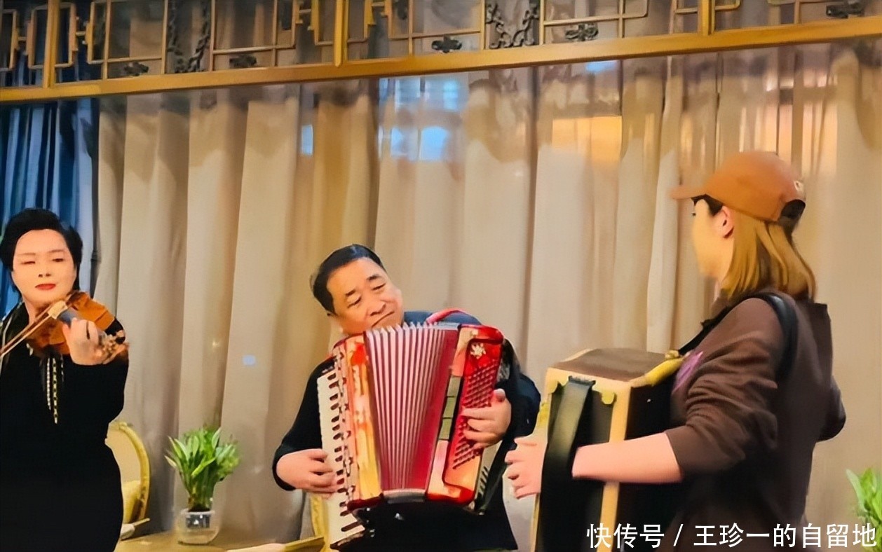 人人约会格外忻悦,姜昆还欢畅的拉手风琴为人人伴奏。