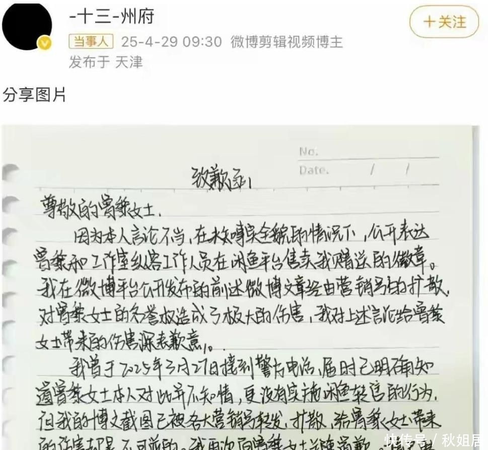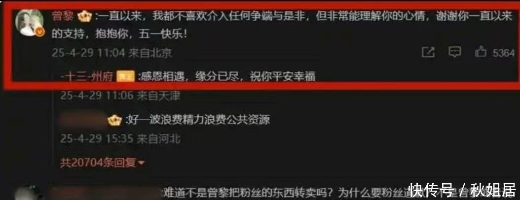 但4月29日,曾黎职责室转发了一封维权粉丝的谈歉信,再次将事件推向风口浪尖。