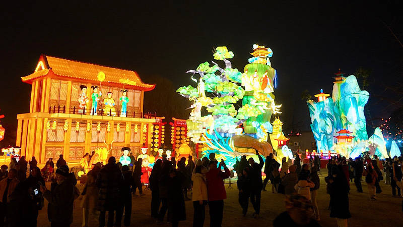 不时前行,便会抵达第四板块“上林闲趣·宫廷雅会”与第五板块“千灯祈愿·喜福东说念主间”。“凤冠鸾台”灯组尽显精致韵味,“瑞兽祈年”“冰湖福海”则承载着东说念主们对新年的好意思好祈愿。