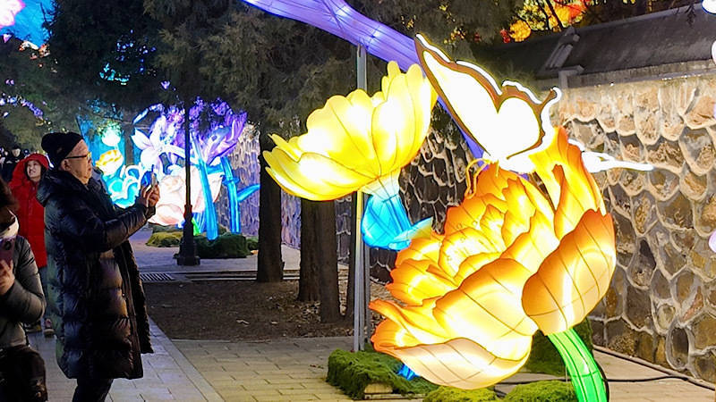检票入园后,沿说念路北侧前行,便可顺次不雅赏第二、三板块的秉性灯组。“千灯引岁”“雀舞升平”“蓬壶月境”“年年过剩”等中枢灯组错乱排布,灯影流转间,园林的精致与新春的吉祥齐全同一,每一处都能带来齐全的视觉颠簸;随后沿说念路南侧折路复返,“山高水长”“似锦锦绣”等灯组纪律呈现,一步一景、步步齐新,令东说念主应接不暇。