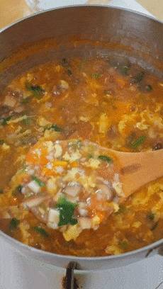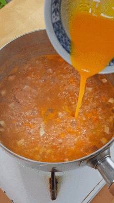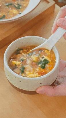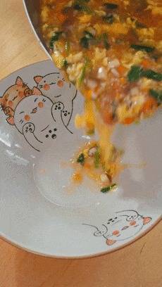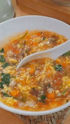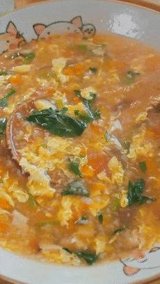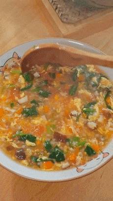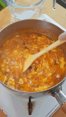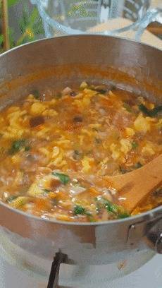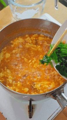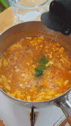 小火煮个3-5分钟,时期差未几了,就把搅好的蛋液淋进去,稍稍凝固一下,再搅开搅成蛋花。若是这时候你搅得太快了,很容易作念出一锅蛋渣。