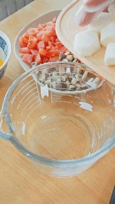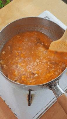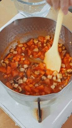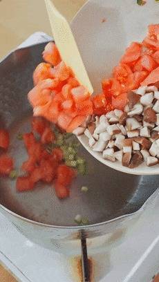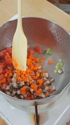 番茄、香菇、胡萝卜这时候就不错下锅了,给它们翻炒几下。